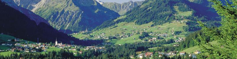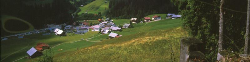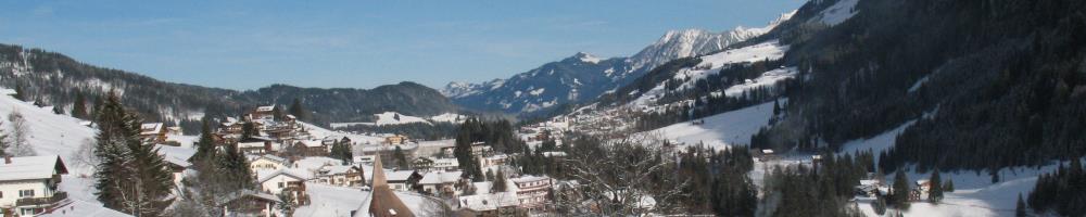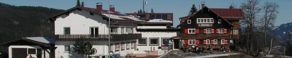 Wir befinden uns am Fuße des Heuberges auf ca. 1400 m über dem Meeresspiegel. Vor uns liegt der Schöntalhof im hellen Sonnenschein hoch über der Ortschaft Hirschegg. Alle Zimmer haben einen herrlichen Blick auf die umliegenden Kleinwalsertaler-Berge.